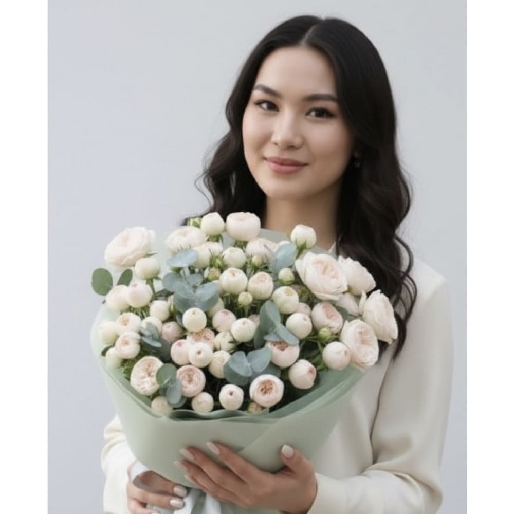 Дорогие клиенты, хотим Вам сообщить, что каждая наша композиция индивидуальна, и каждый наш флорист вкладывают душу в собранные им композиции, и букета в точь в точь не бывает. в зависимости от сезона и наличия цвета букет может отличаться до 30%